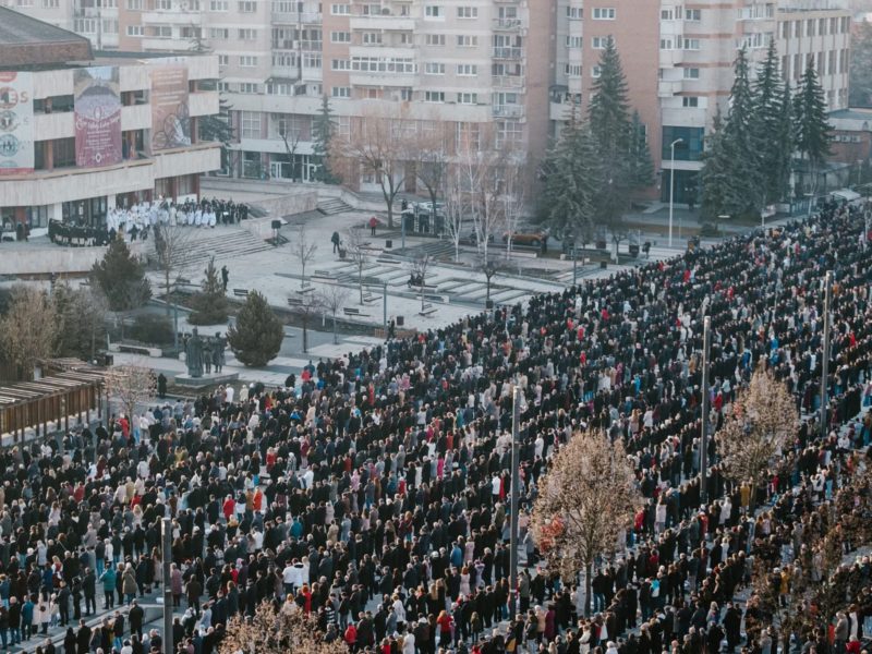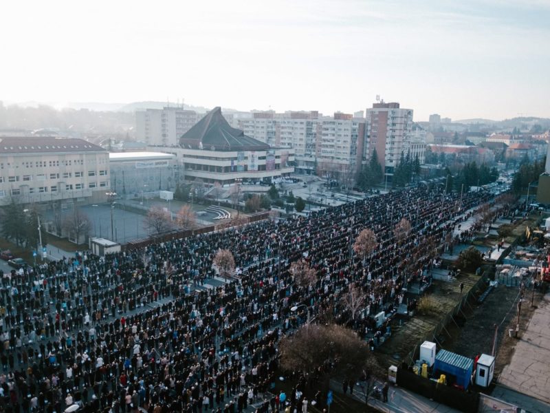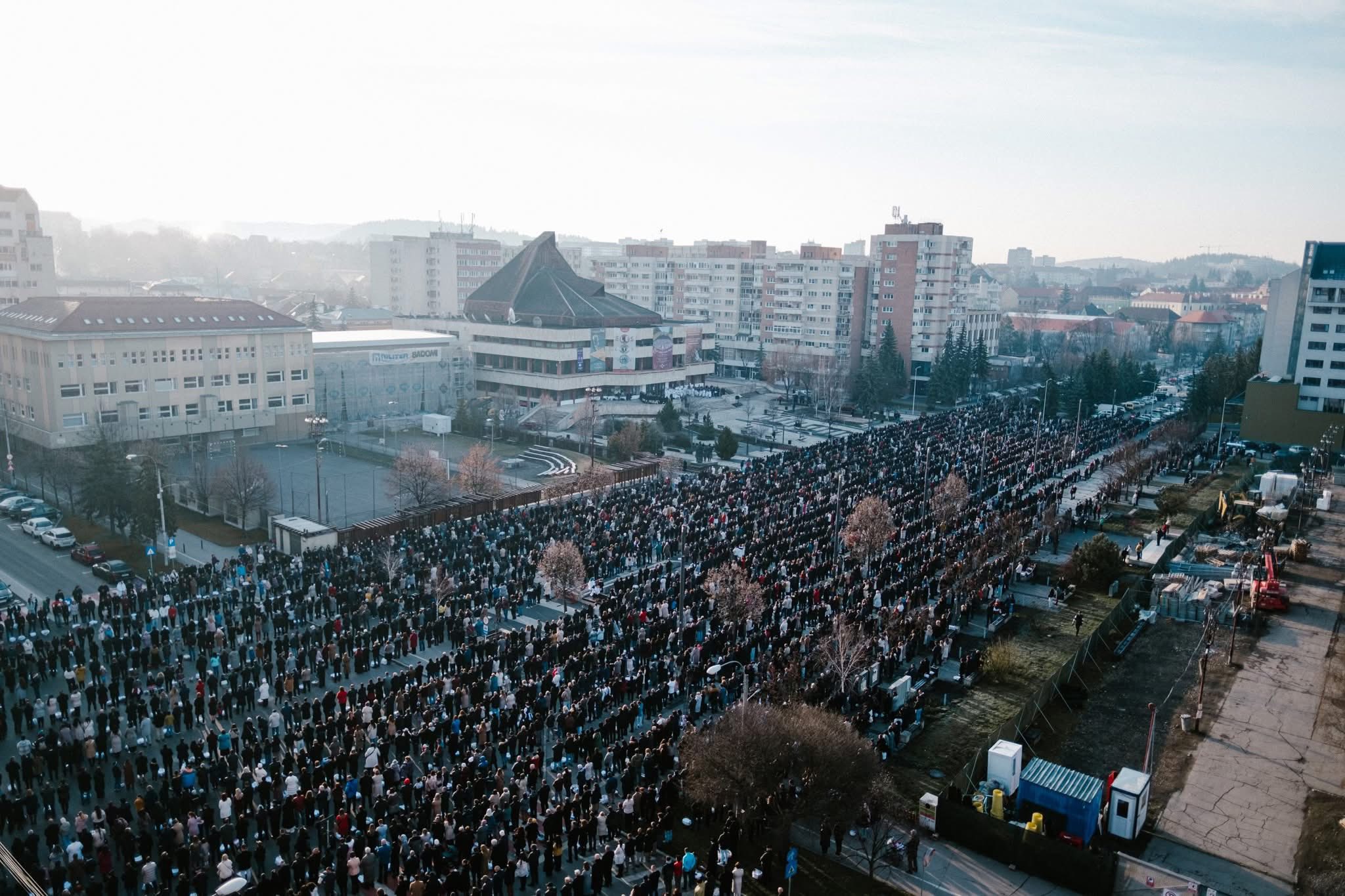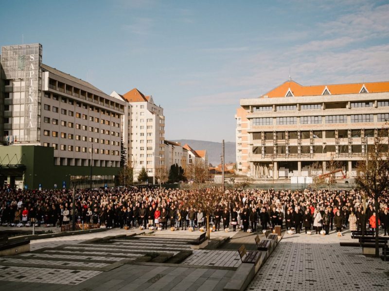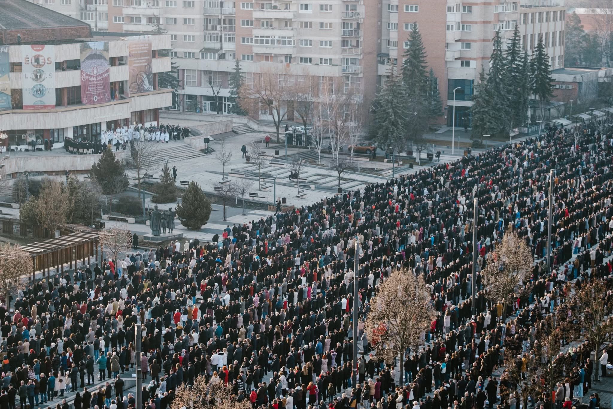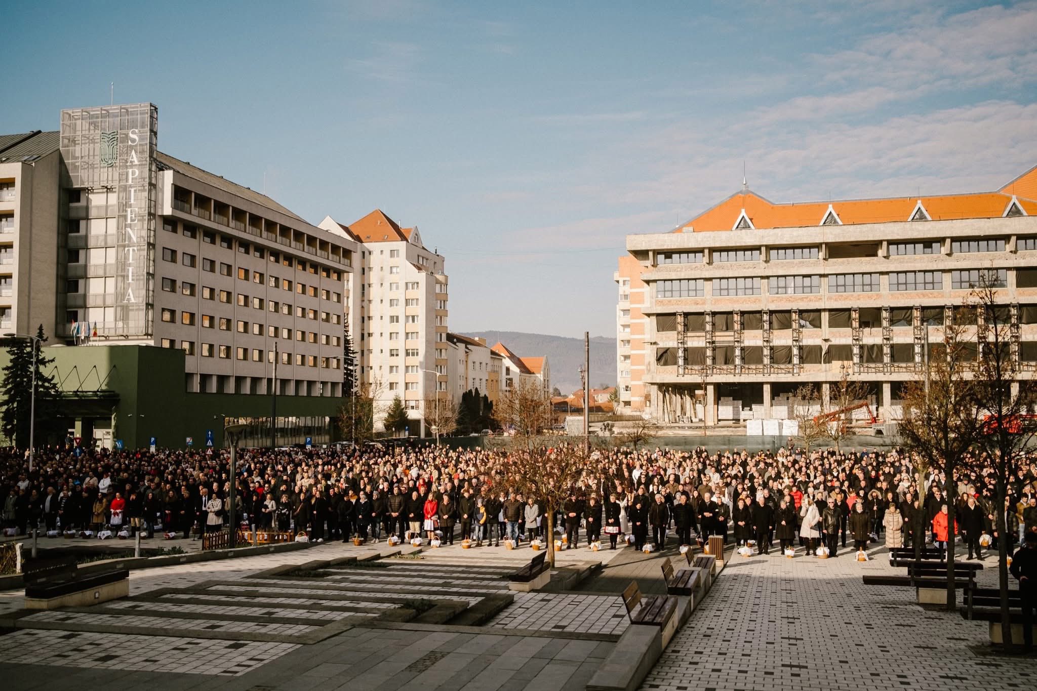 Csíkszeredában ma szabad téren rendezték meg a húsvéti ételszentelést, amelyre több száz helyi lakos érkezett a város főterére.
