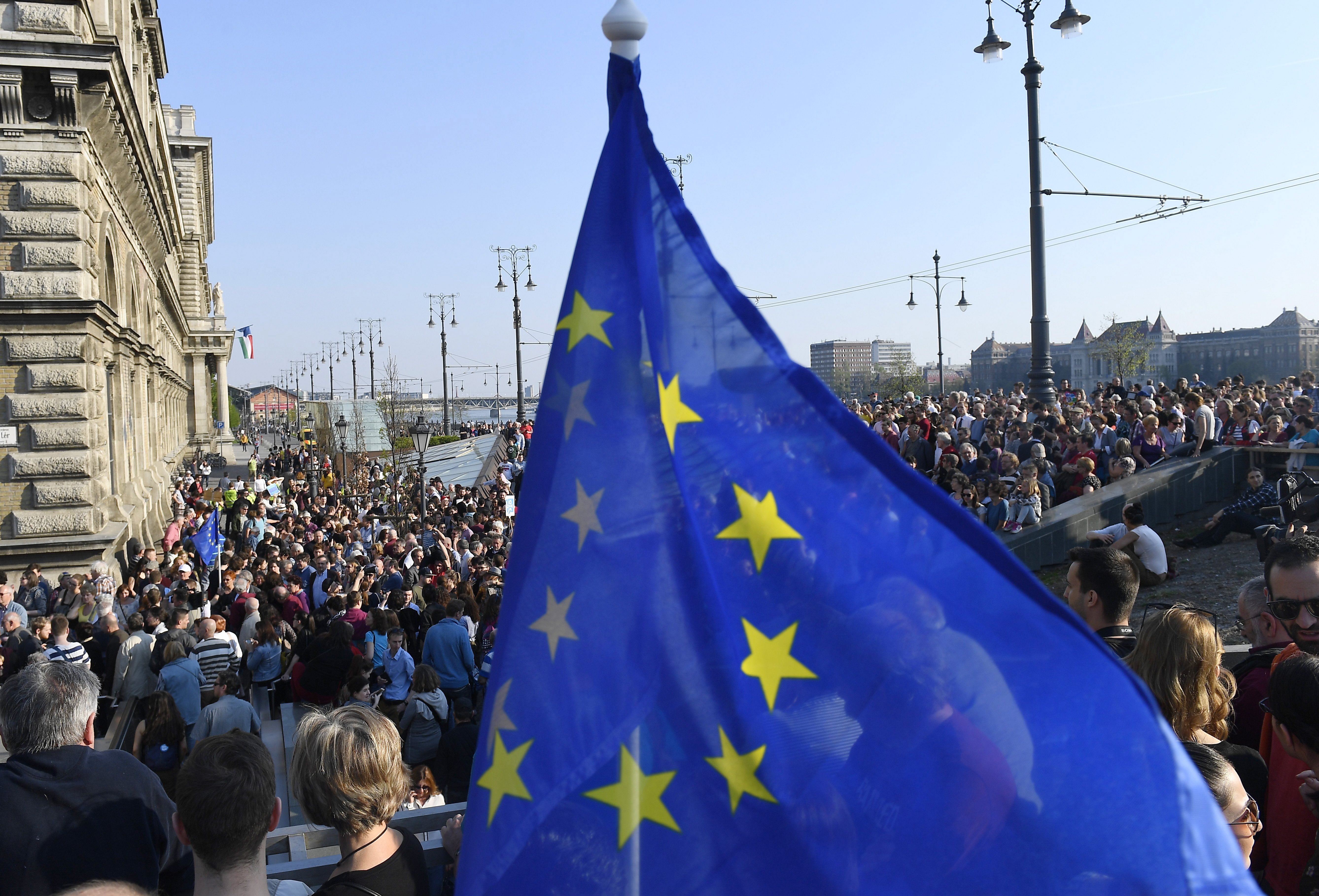 Tízezrek tüntettek a CEU mellett Budapesten