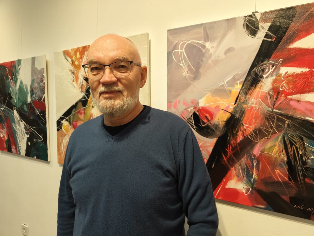 Botár László a világot már jó ideje, hogy formákon keresztül mutatja be számunkra. A színek és az ecsetkezelés a közlés fontos elemei, meghatározzák a kép és a mondanivaló intenzitását. Botár Lászlóval beszélgetünk, először is arról, hogyan egészíti ki egymást és hogyan kommunikál ez a két festő világ a kiállítás keretében.